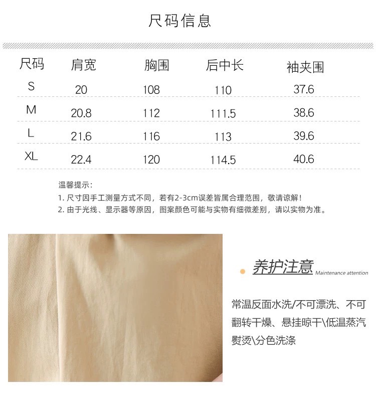 尺寸表会因布料弹性、水洗处理、测量起讫点等因素,与实际商品尺寸略有误差,误差尺寸