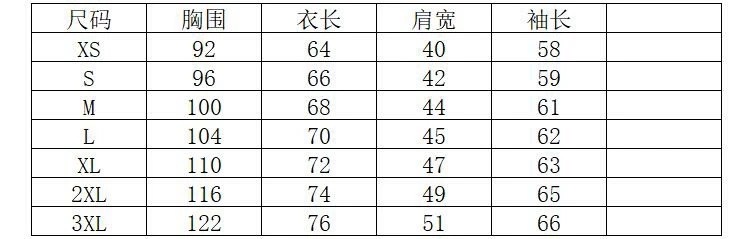 尺寸: S M L XL