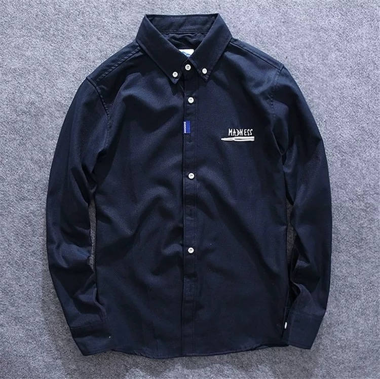 潮牌MDNS余文乐秋季纯色简约休闲衬衫男牛津纺宽松商务长袖衬衣